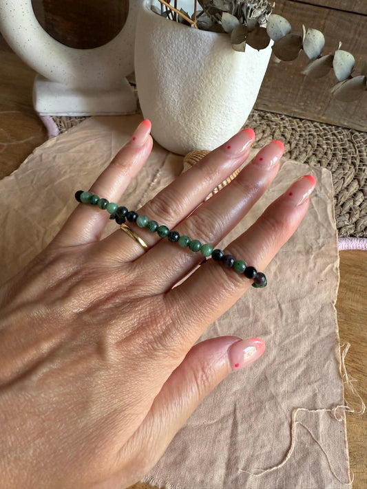 Pulsera Rubí-Zoisita 4mm (Vitalidad y Crecimiento personal)