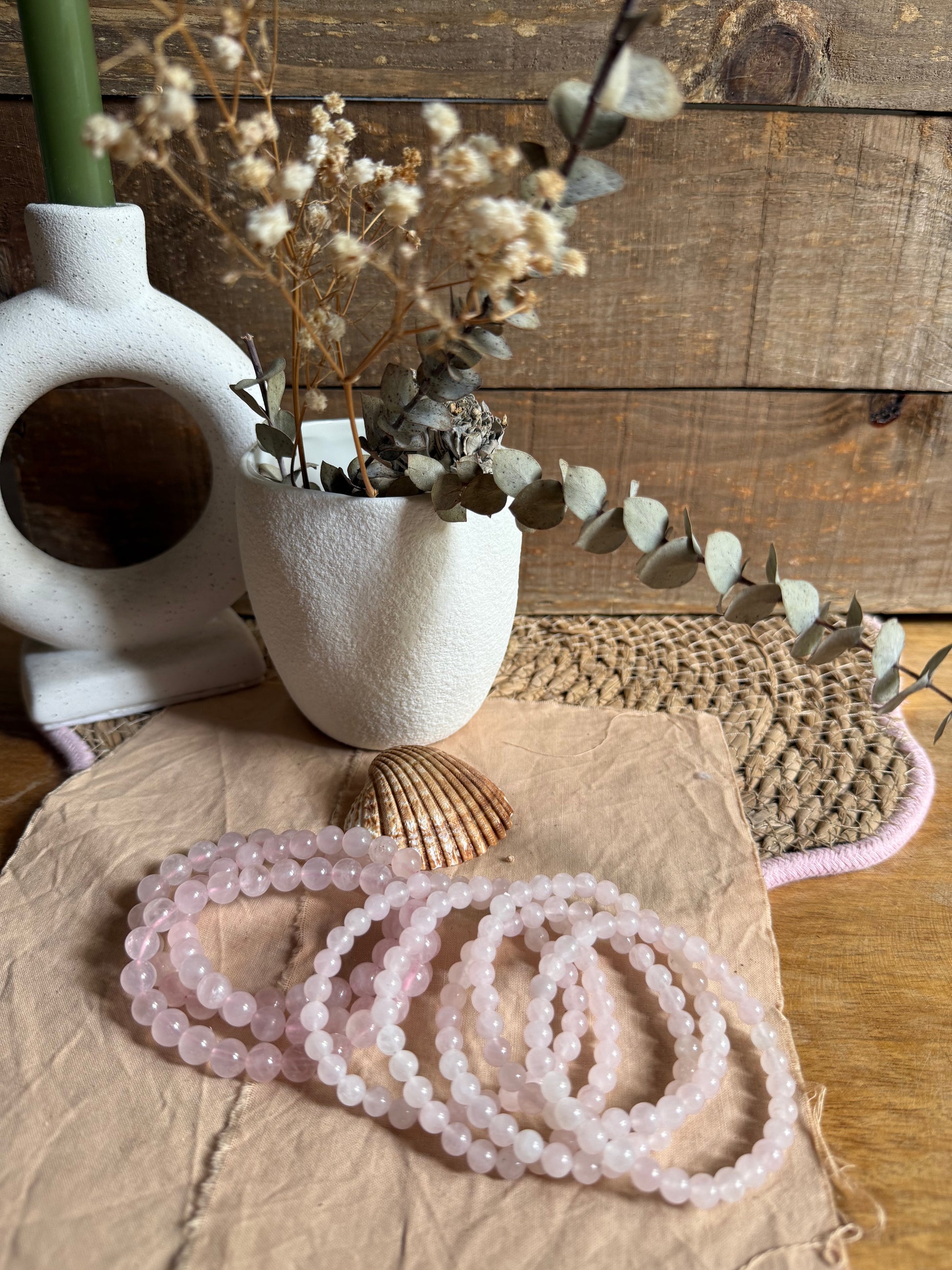Pulsera Cuarzo Rosa 6mm (Amor y Armonía)