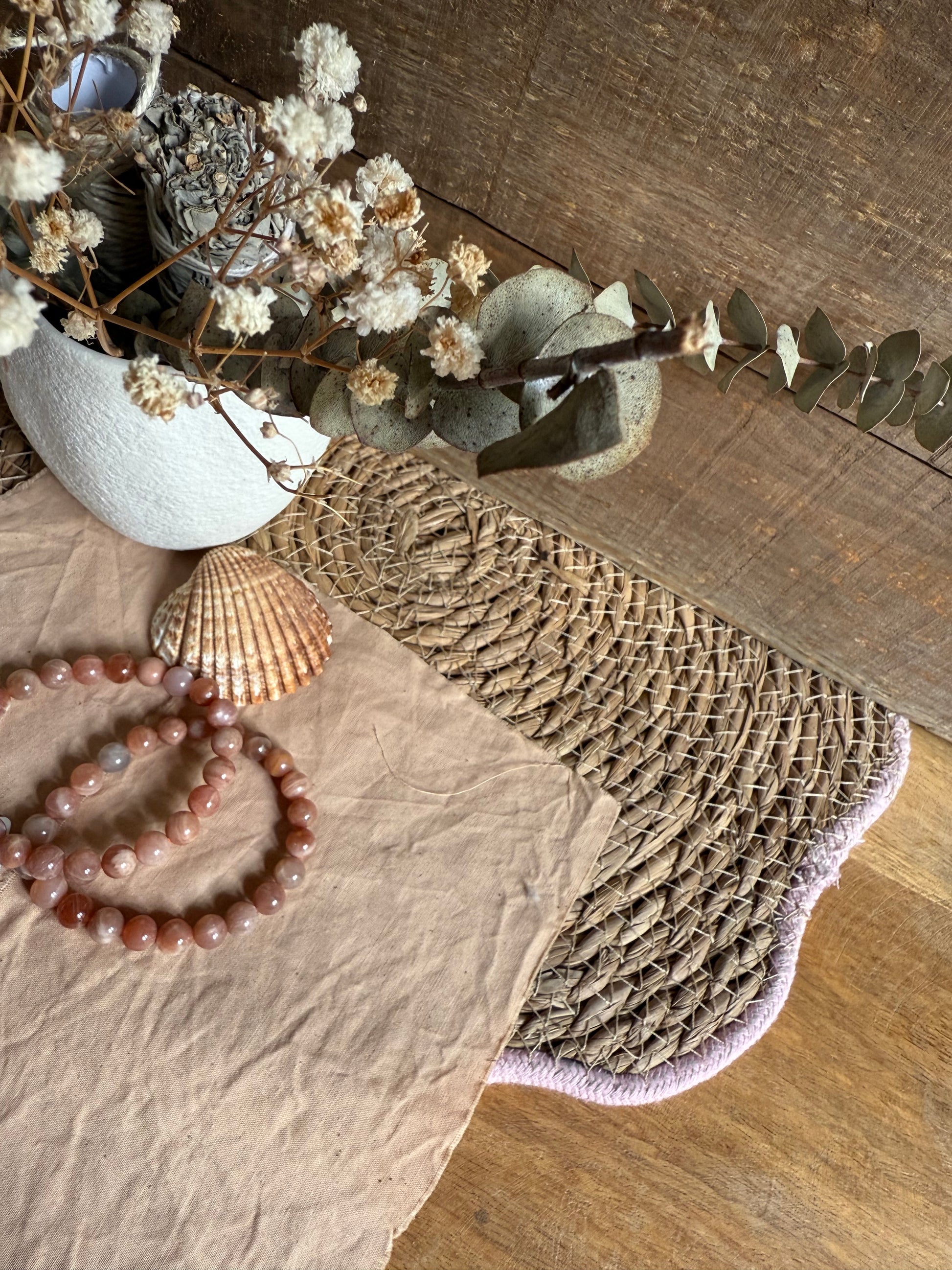 Conecta con la sutileza de la piedra lunar rosa a través de esta pulsera, creada para acompañarte en tu camino de amor propio, intuición y sensibilidad consciente.